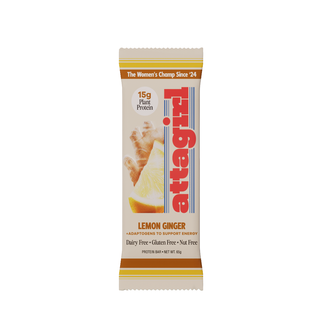 Meet the Attagirl Lemon Ginger Protein Bar—bright, spicy, and full of lift. Vibrant lemon and warming ginger in a bar that wakes your senses and keeps your motivation high.